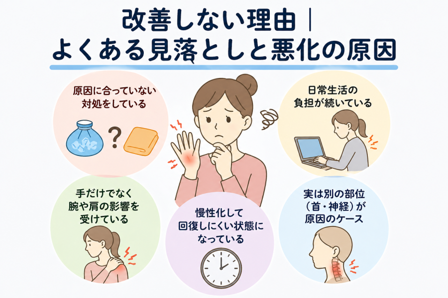 手そのものだけでなく、腕や首の状態が関係することもあるため、少し広い視点で考えることが大切とされています。