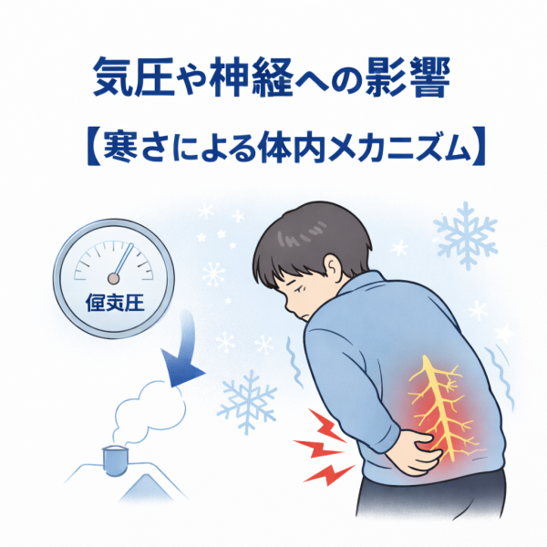 冬は寒さだけでなく、気圧の変動が大きくなる季節でもあります。気圧が下がると体内の組織が膨張しやすくなり、神経が刺激されやすくなると言われています。これにより、普段は感じない腰の違和感を痛みとして認識しやすくなるケースもあるようです。
