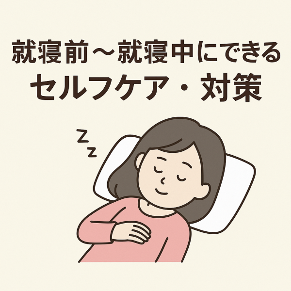 「眠りにつくとき、体の力が抜けない…」そんなときには呼吸法が役立つと言われています。深くゆっくりとした腹式呼吸は副交感神経を優位にし、腰の緊張をやわらげやすいと紹介されています。具体的には、4秒かけて鼻から息を吸い、6秒かけて口から吐くリズムを意識するだけでもリラクゼーション効果が得られるとされています。また、眠る前に軽い瞑想や音楽を取り入れるのも、腰への余分な力みを減らす工夫のひとつだと言われています(引用元:https://takeyachi-chiro.com/腰痛が軽減する寝方とは。姿勢しだいで大きく変/)。