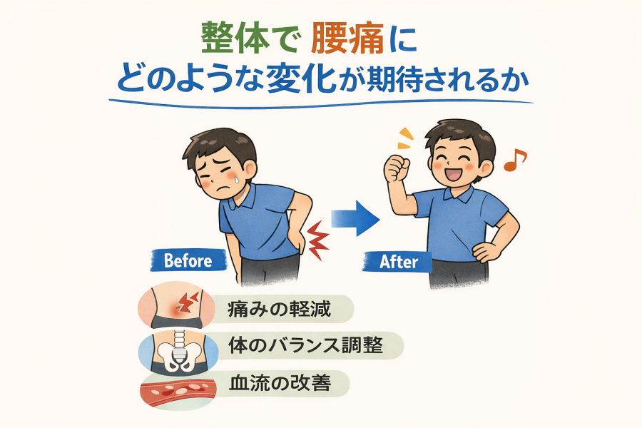 「整体って実際どう変わるの?」と気になる方も多いですよね。結論からいうと、体のバランスや動き方が整うことで、腰への負担のかかり方が変わる可能性があると言われています。