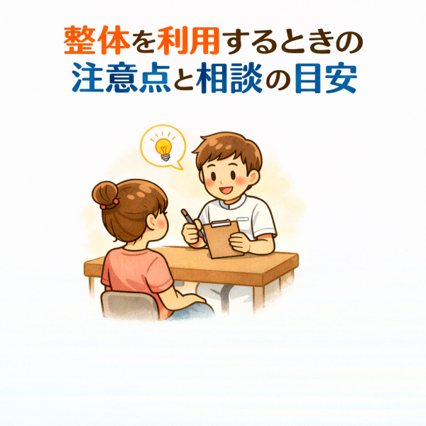 また、「通えばOK」ではなく、日常の過ごし方も含めて考えることが大切です。整体はあくまで体を整えるきっかけであり、その後の習慣が影響するとも言われています。