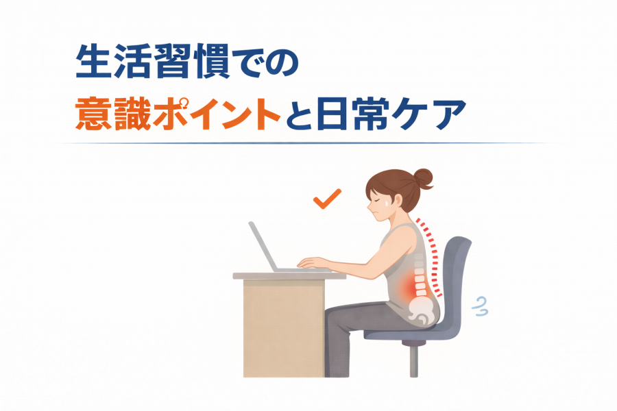 お身体の不調を緩和させるためには健康的な生活が大切です。痛みが起こってしまったときは、腰や背骨に負担をかけずに血流を良くする・筋肉を育てるようにしましょう。