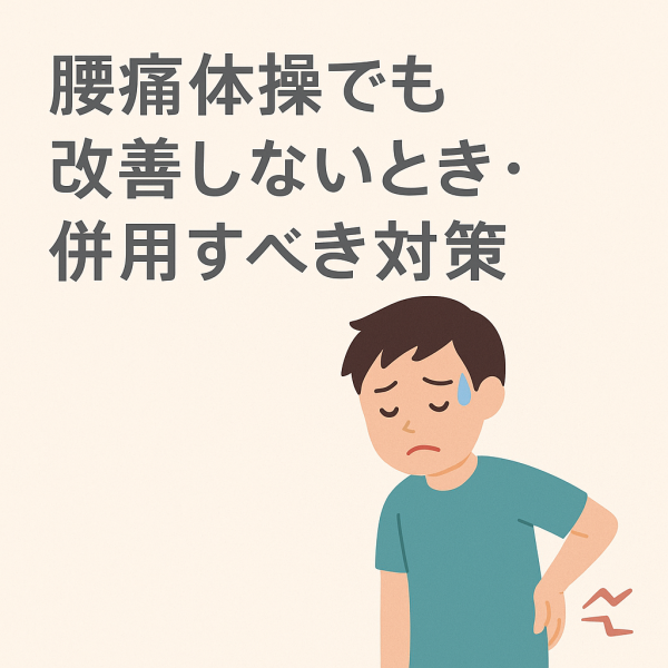 そう感じる方も少なくありません。体操だけで変化が出づらい場合は、体の使い方や生活環境、筋力のバランスなど、別の要因が関係していることもあります。ここでは、腰痛体操に加えて取り入れると良いとされている補助的なケアや、病院・専門機関への相談の目安などを解説します。