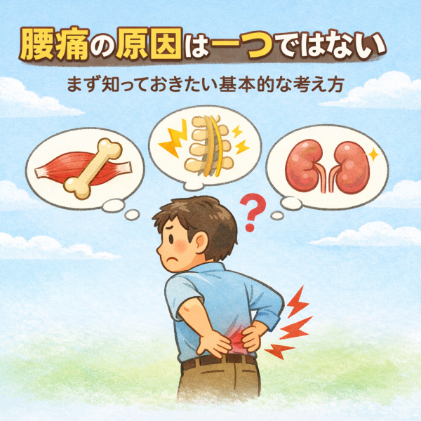 腰痛は骨だけの問題と思われがちですが、筋肉、関節、神経などが複雑に関わっているケースもあるとされています。「骨が原因じゃないなら安心」とは限らず、いくつかの要素が重なって起きていることも少なくありません。だからこそ、ひとつの視点だけで判断しないことが重要です。