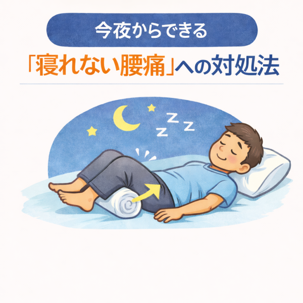 もう一つ見逃せないのが、体の動きやすさです。腰椎や骨盤、股関節の可動性が低下すると、寝返りが打ちづらくなり、同じ姿勢が続きやすくなります。その結果、腰の一部に負担が集中し、夜間の痛みとして感じやすくなるとも言われています。「寝返りが少ないかも?」と感じる方は、この点も関係しているかもしれません。