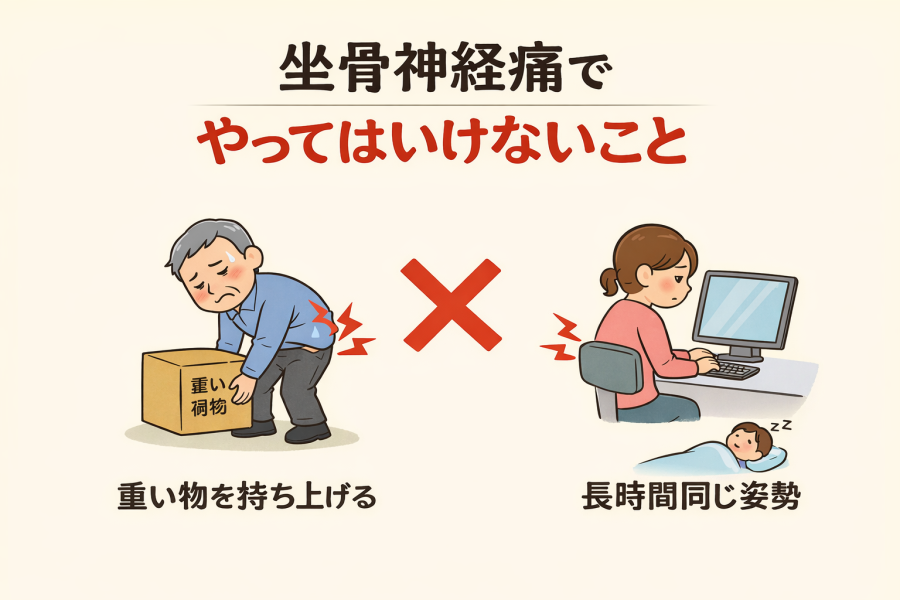 坐骨神経痛でやってはいけないことは、特別なことではありません。日常の動作を少し見直すだけでも、負担の軽減につながる可能性があると言われています。