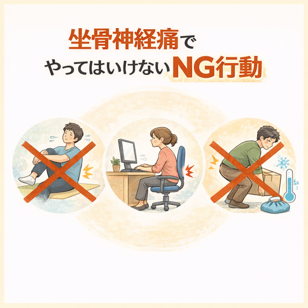 坐骨神経痛の対策では「何をするか」と同じくらい、「何を避けるか」も重要だと言われています。良かれと思ってやっていることが、逆に体への負担につながっているケースもあるためです。